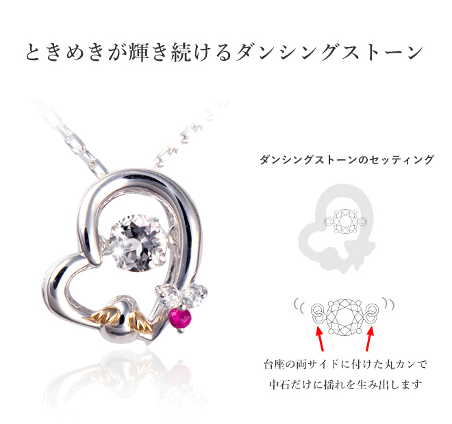 眩いほど煌めく、ダンシングストーンのキラキラ揺れる輝きを優しいハートで包み込むデザイン。