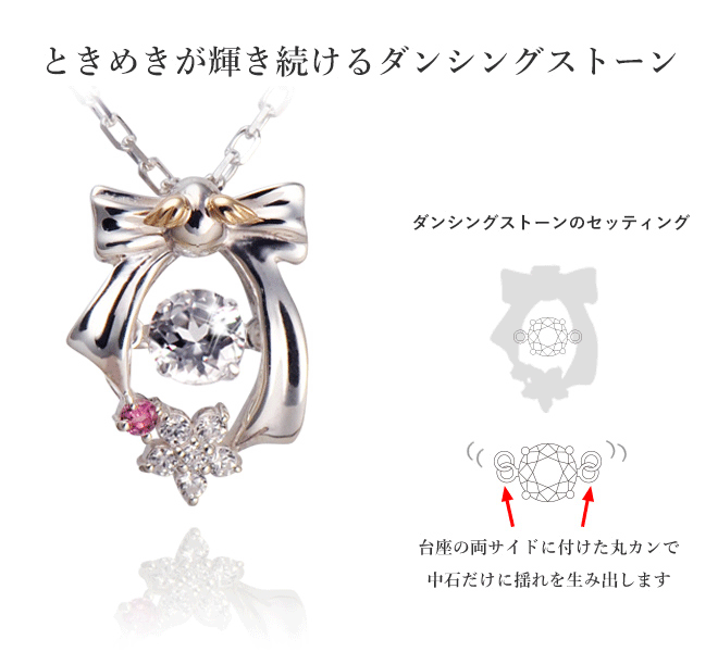 眩いほど煌めくダンシングストーンのキラキラ揺れる輝きの上には可憐なリボン。